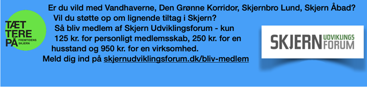 Hermed en opfordring til at blive medlem af Skjern UdviklingsForum. Flere medlemmer er ensbetydende med større indflydelse. Du kan melde dig ind ved at udfylde blanketten under "Bliv medlem" eller gå direkte til blanketten ved at trykke på "Læs mere".
