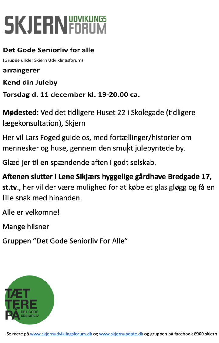 Der begynder så småt at dukke arrangementer og begivenheder op, der har sit udspring i Gentænk Skjern. Følg med i udviklingen. Senest: Nyt fra "Det gode seniorliv for alle".🙂