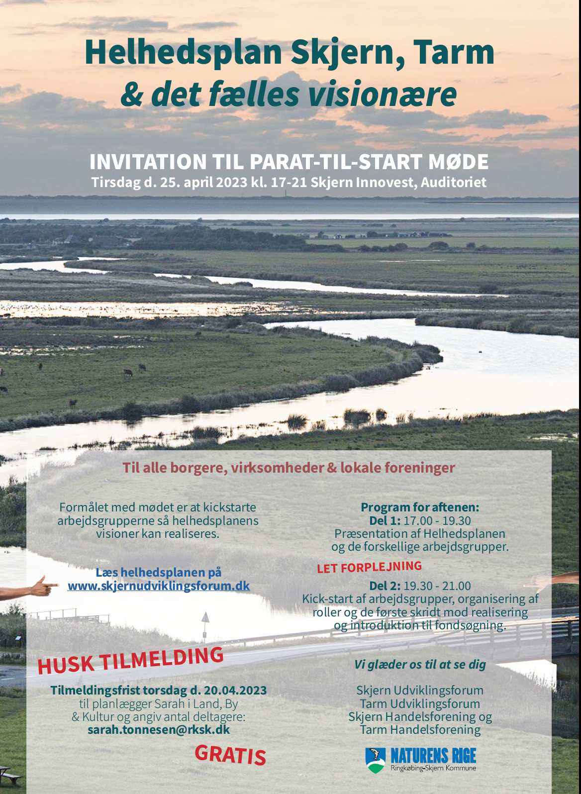 Vi mener, at glæden ved og omsorgen for lokal udvikling fint går hånd i hånd med at trække samme vej i Ringkøbing-Skjern Kommune. Vi håber, at du bidrager med et medlemskab og gerne giver en hånd med i vores arbejdsgrupper. Kontakt bestyrelsen eller formanden.