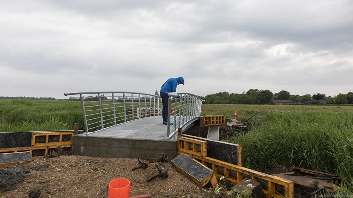 Den gamle bro var i meget dårlig og usikker forfatning. Derfor skulle der sættes en ny op. Det blev en standardbro, hvor Skjern Udviklingsforum betalte lidt ekstra for at få lavet en flot rækværk.