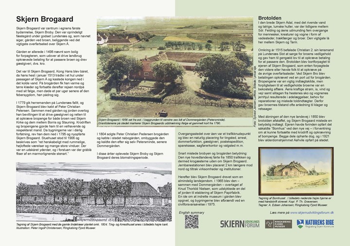 Vi ser projektet omkring Skjern Brogaard som en del af en større bevægelse i og omkring Skjern By. Det startede med Skjerns Skønne Broer og senere Den Grønne Korridor, herunder med formidling af historie og natur. Dernæst Vandhaverne omkring vandværkernes historie og æstetik. Så fulgte Skjern Å Bad som en genoplivning af fordums badeliv ved Skjern Å, Fredskoven til folkefest og nydelse, og endelig Skjernbro Lund, som er en glemt og nu pudset perle.