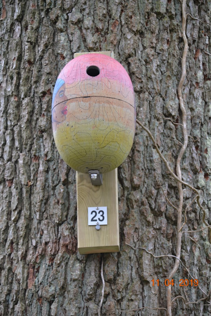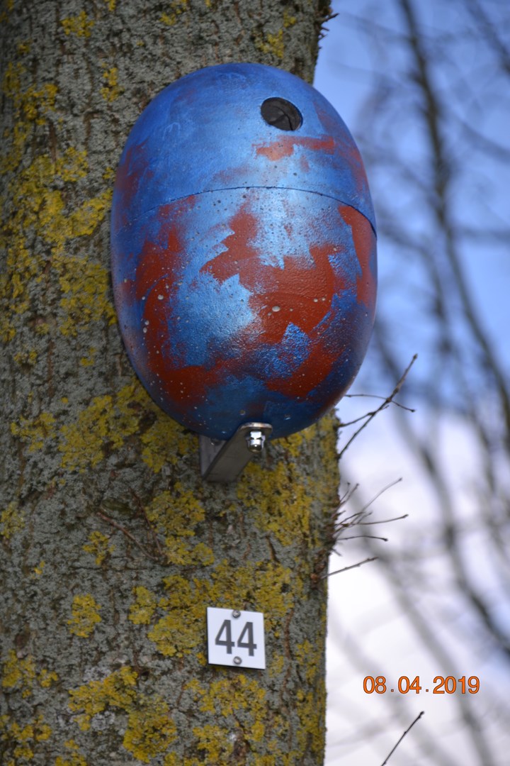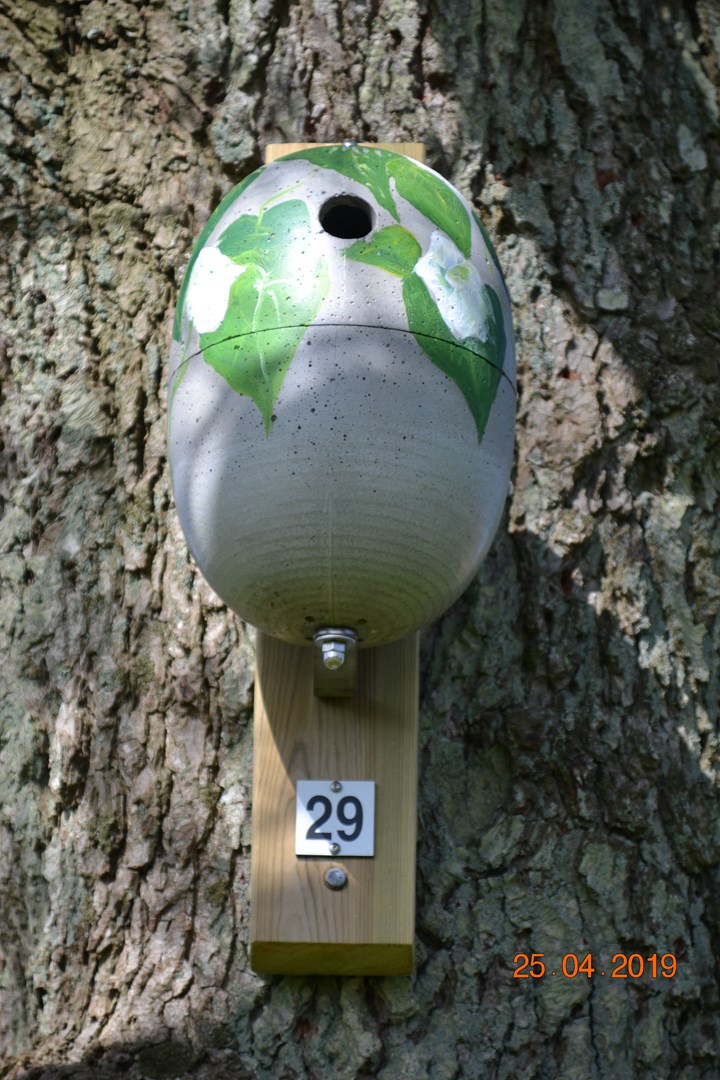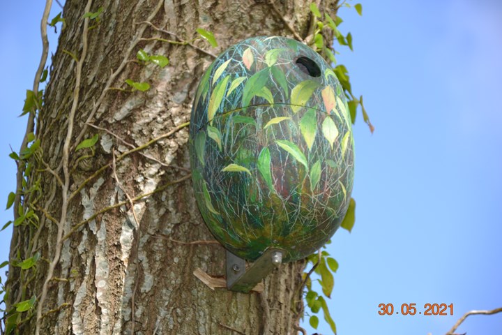 Det originale fuglehus, der blev sat op i 2019, er desværre blevet ødelagt af et hurtigt voksende træ, der voksede ud over beslaget og knuste huset.