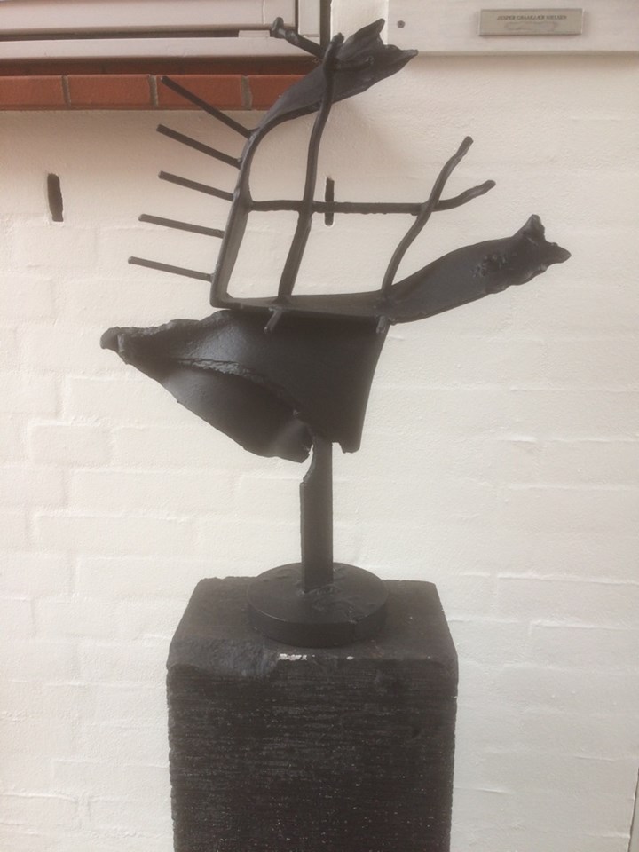 Uffe Østergaard kendte Henning Kjær, der var dygtig med sine hænder og bl.a. lavede de fineste kontrabasser. Henning Kjær fik den lille model, og aftalen blev, ”at den færdige skulptur max måtte koste 10.000 kr. Sådan blev det”, fortæller Uffe Østergaard.