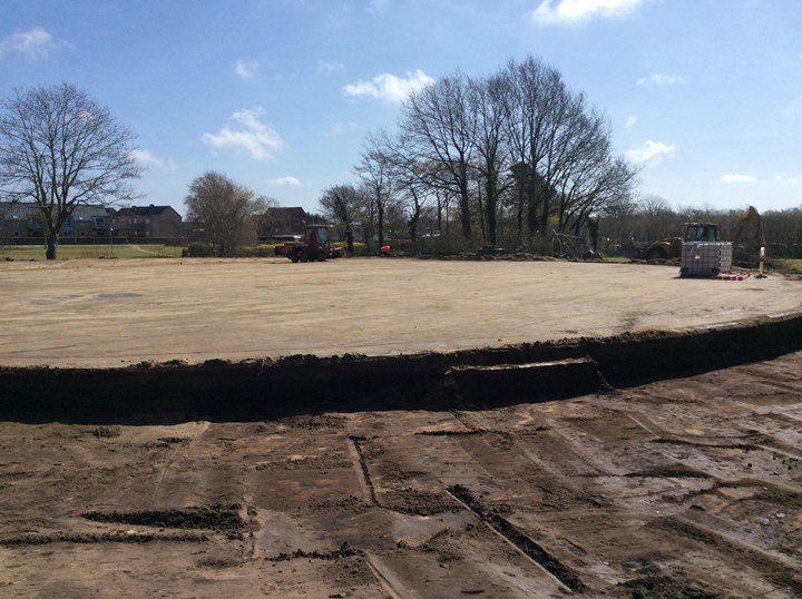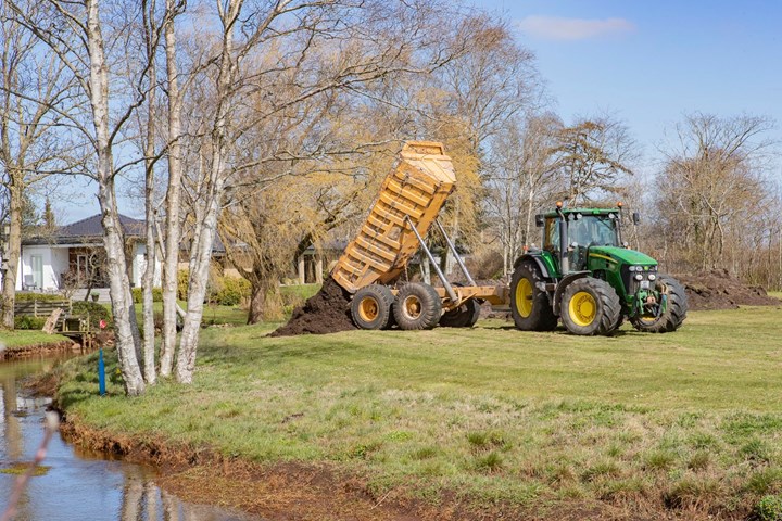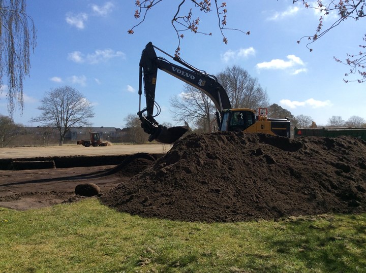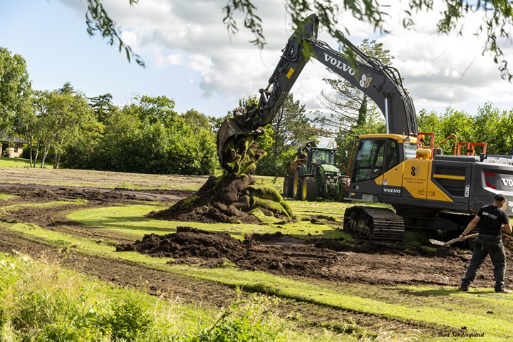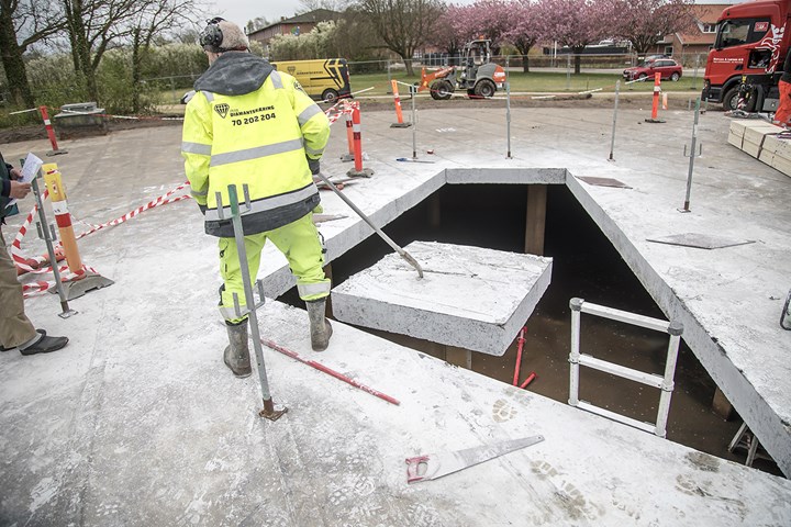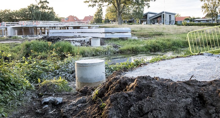 Vandtanken er blotlagt og jorden er kørt over på den anden side af Kirkeå til opfyldning.
