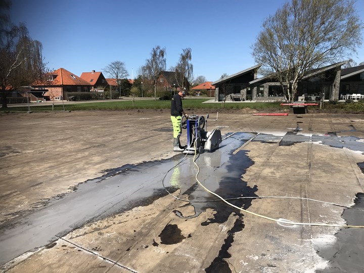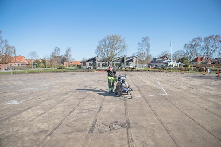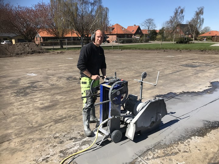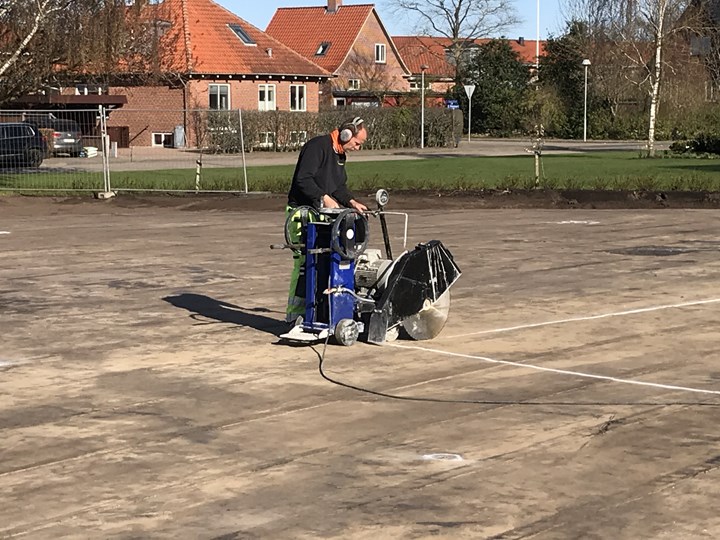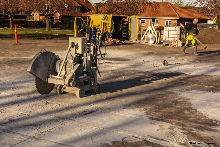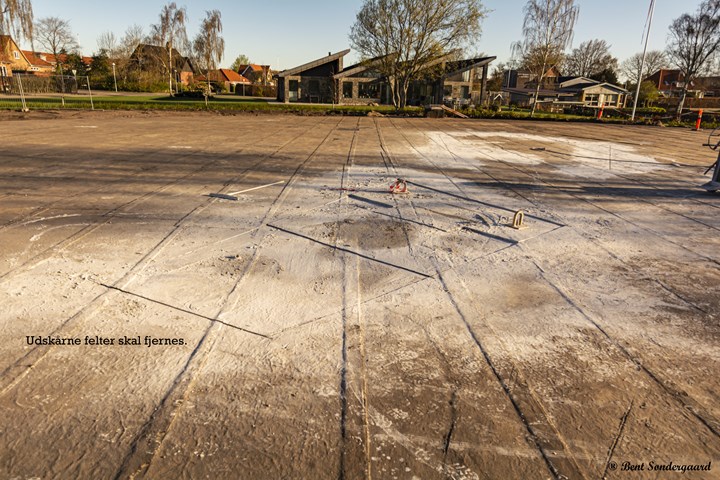 Et stort arbejde et pågået med opstregning af de felter, der skal skæres ud med diamantklinge og løftes ud.