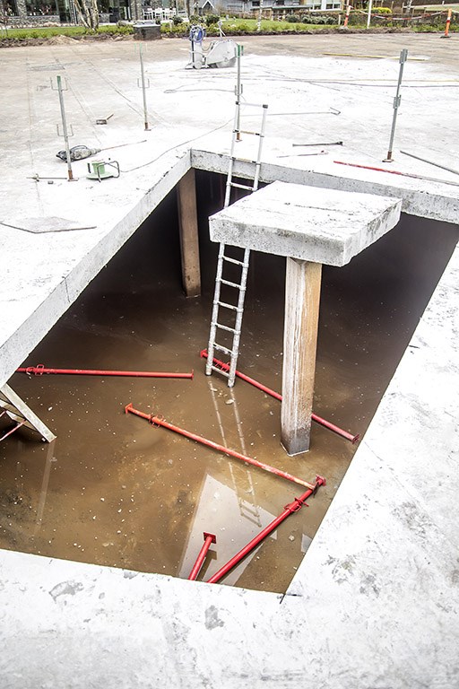 Det sidste beton i loftet er næsten væk og så følger siderne med indsyn til Vandtanken set fra Kirkeå.