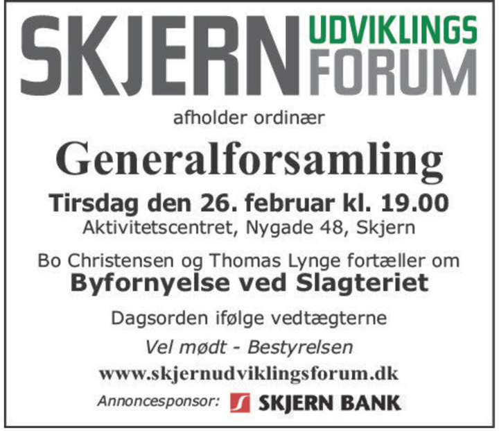 Afslutningsvis takkede Lars for den brede opbakning til Skjern Udviklingsforum og fremhævede formålet med foreningen: At udvikle og brande Skjern som et godt sted at arbejde, bo, leve uddanne sig og besøge.