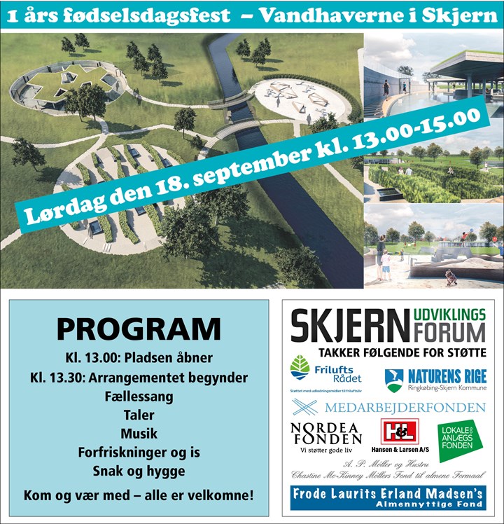 Her er en række billeder fra Vandhavernes 1 års fødselsdag. Corona gjorde, at Vandhaverne ikke kunne indvies med en ordentlig folkefest i september 2020. Derfor havde Skjern Udviklingsforum valgt at holde en års fødselsdag i stedet for - og det med alle sejl sat til.