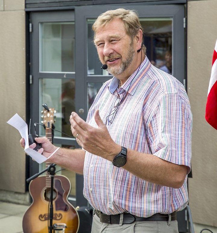 Vejret var flot med sol og lidt blæst. Frede Haukrogh spillede til fællessang og sang lystigt og fortalte små krydrede historier.