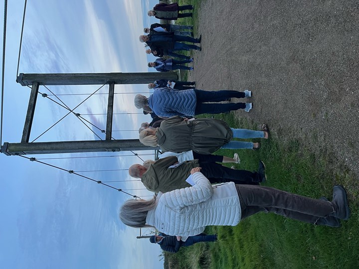Mange havde taget cyklen for at høre museumsinspektør Torben Egebjerg fra Ringkøbing Fjord Museum fortælle en spændende historie om Kongevejen, Kong Hans’s Bro, Skjern Brogaard og Dommergården.