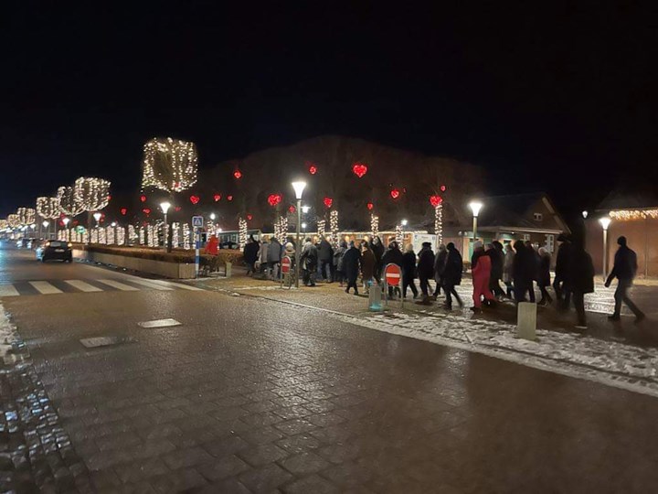 Juleturen gennem byen med Keld Vinter som fortæller blev en succes med ca. 50 fremmødte - på trods af kulden.