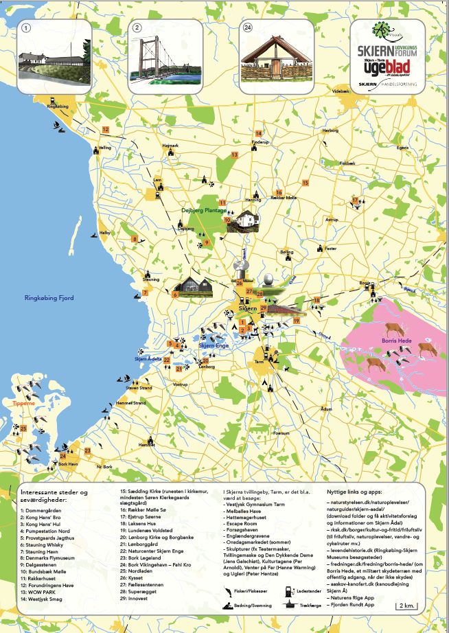 Kortet er nu blevet udarbejdet og ligger klar til udlevering. Tarm Bogtryk har stået for det praktiske, AS har designet kortet og bestyrelsesmedlemmer fra Skjern udviklingsforum har fundet fakta til placering på kortet.
