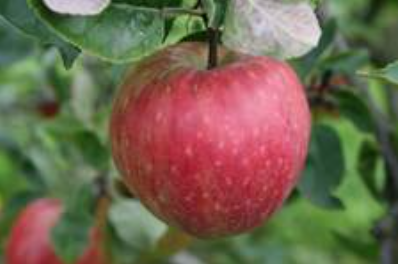 Frugten er mellemstor, fladrund, grundfarven hvidlig grøn med brunrød solside med talrige hudpunkter.